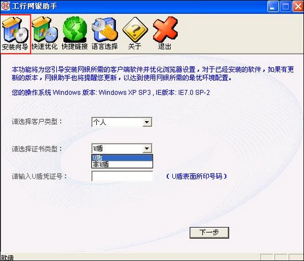 如果您是第一次在电脑上使用个人网上银行,请参照工行个人网上银行系统设置指南首先调整您的计算机设置,然后安装U盾驱动程序,不同品牌U盾的驱动程序只能用于本品牌。如果您希望用光盘安装,请运行U盾光盘,选择安装主页面的“系统升级”,系统会自动检测并提示您安装补丁。安装补丁后,请选择“驱动程序安装”,安装U盾驱动程序。
