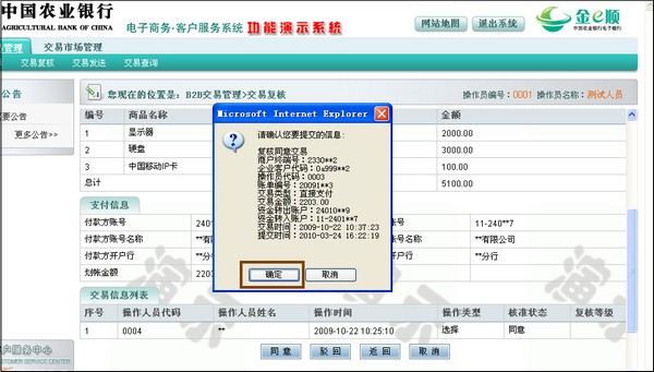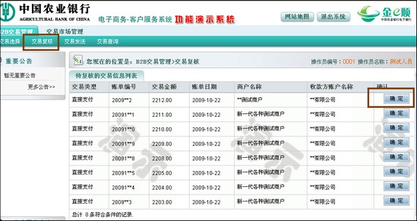 14、点击“交易复核”,选中待复核交易,点击“确定”