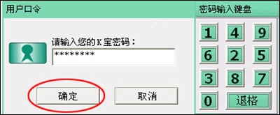 10、输入K宝密码,点击“确定”