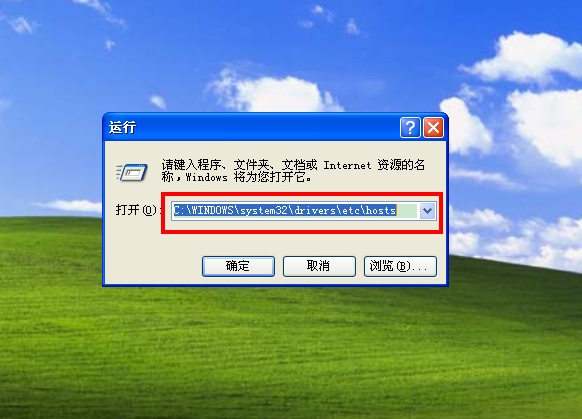 2、输入C:\WINDOWS\system32\drivers\etc\hosts 点“确定”,请选择用记事本打开。